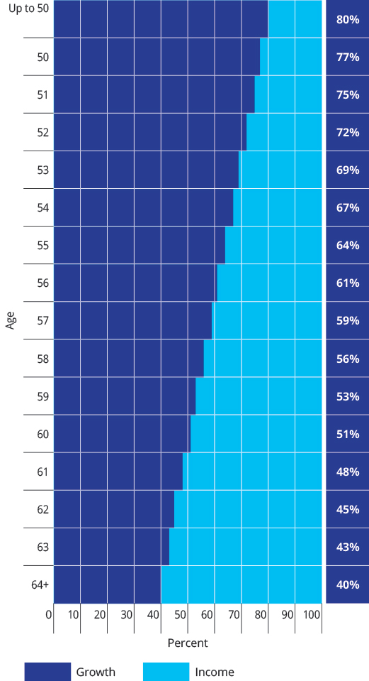 Your exposure to growth assets will increase in line with the graphic below. |