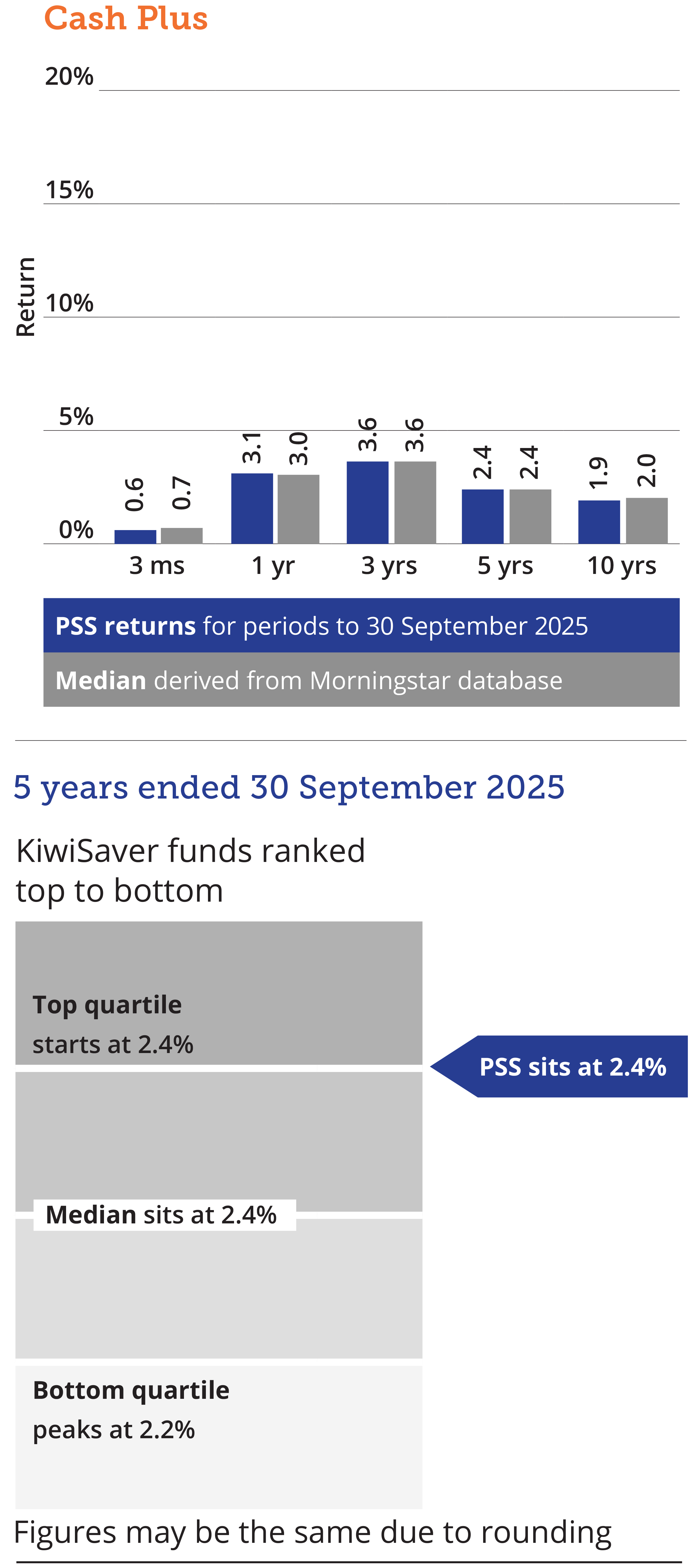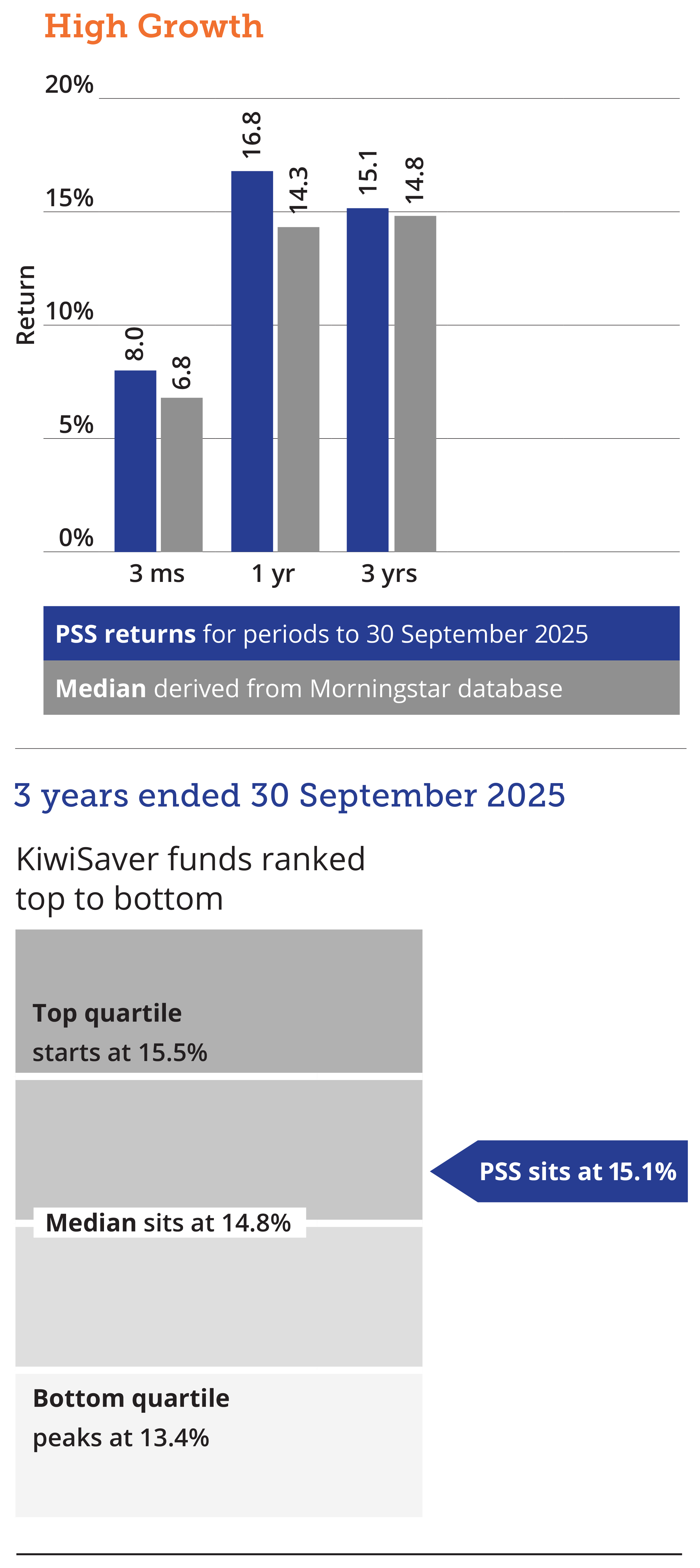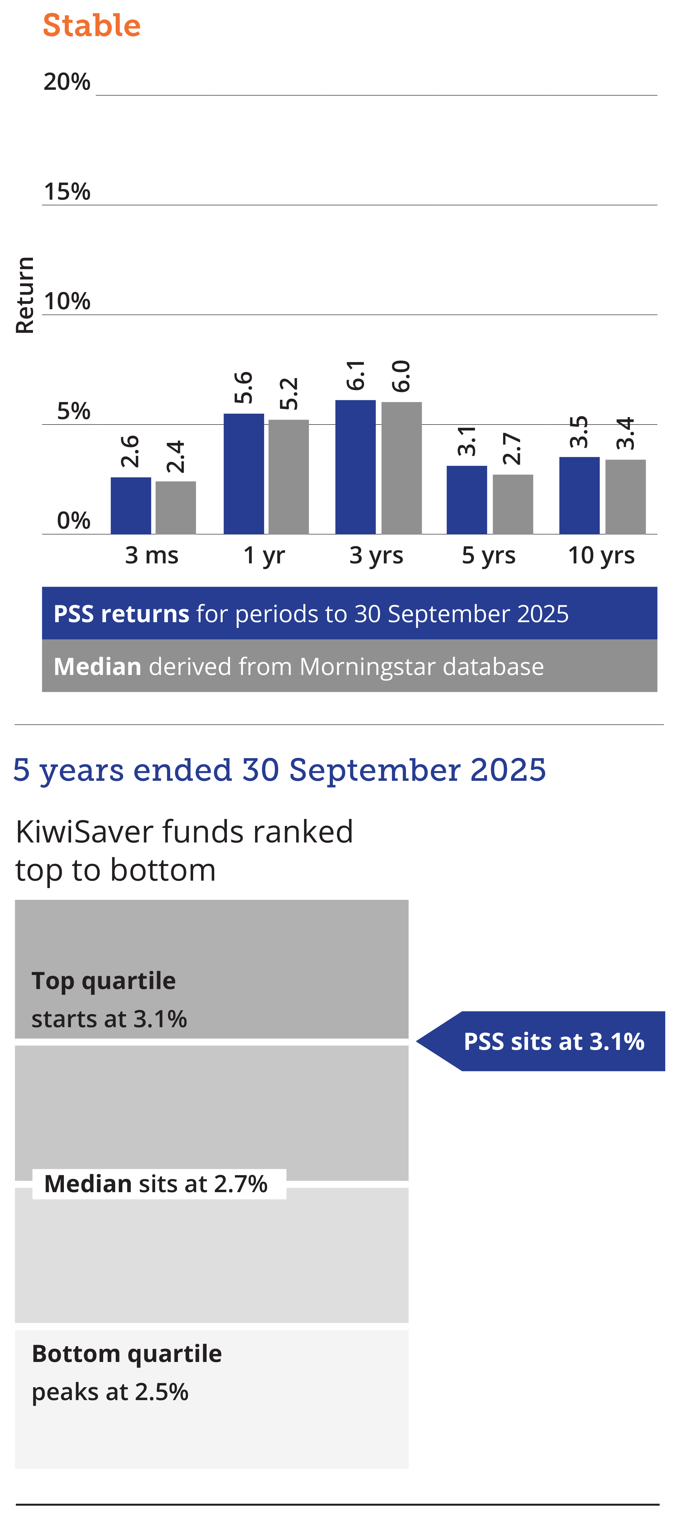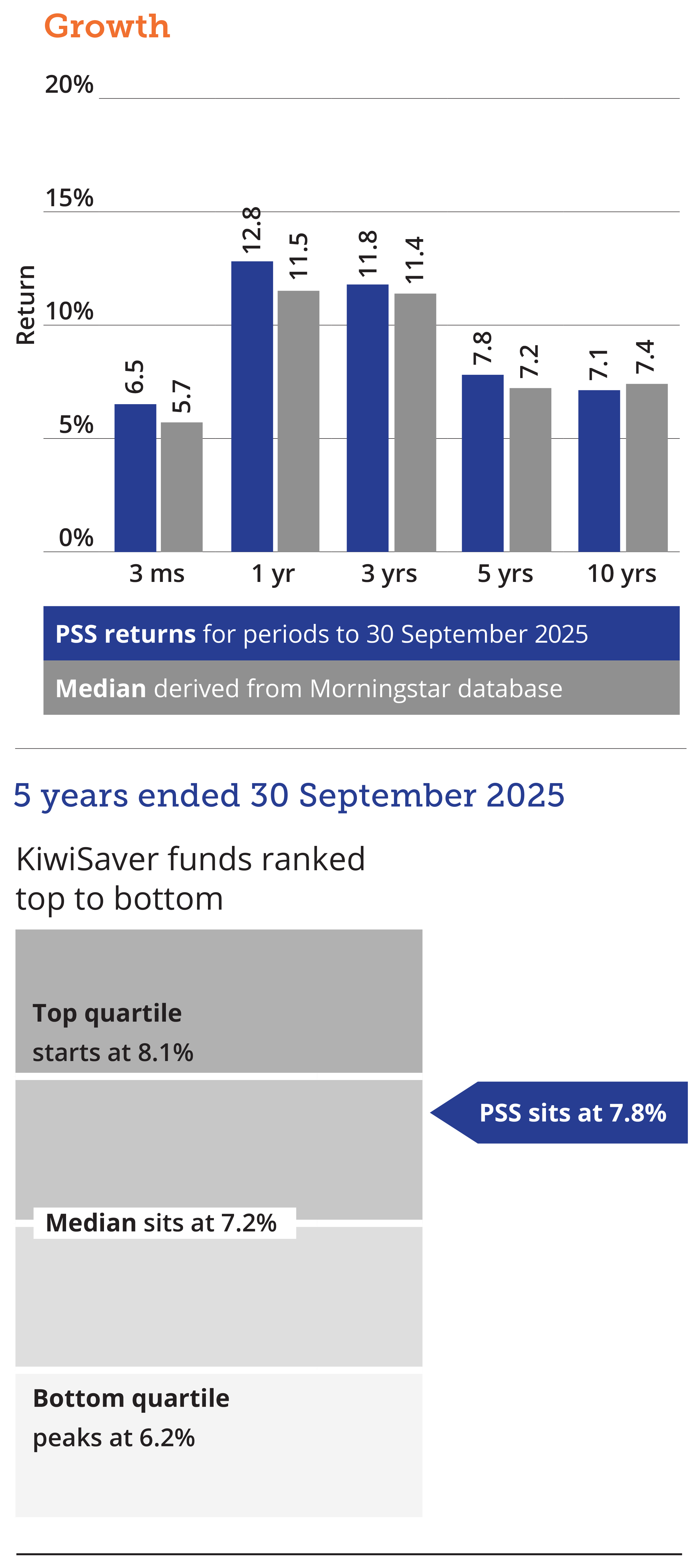 While all care has been taken in the display of these fund performance figures, neither PSS Trustees Limited nor any other person accepts responsibility for any errors. The returns are not the returns individual PSS or KiwiSaver members would have received as this depends on the prices at which units are purchased on the date that contributions were received for each PSS or KiwiSaver member.
