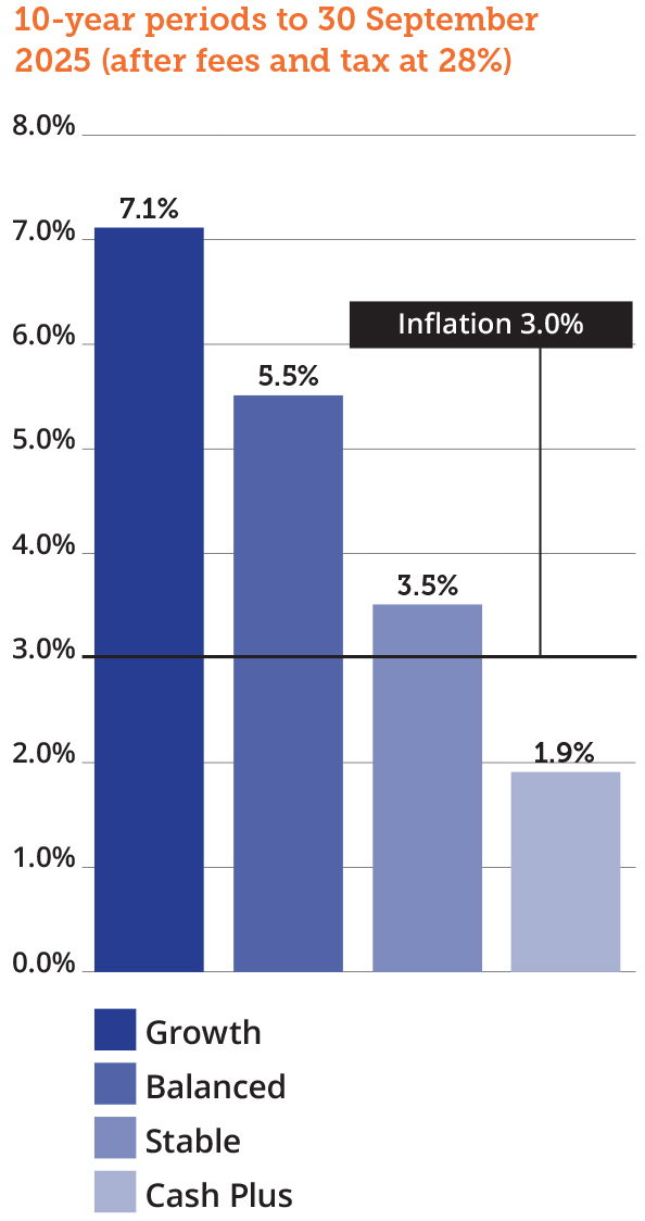 These investment performance figures are based on the change in unit prices over a given period and are expressed as a percentage. Returns are after fees and before tax. Percentage returns on your investment will vary depending on your prescribed investor rate (PIR). Read more about tax.